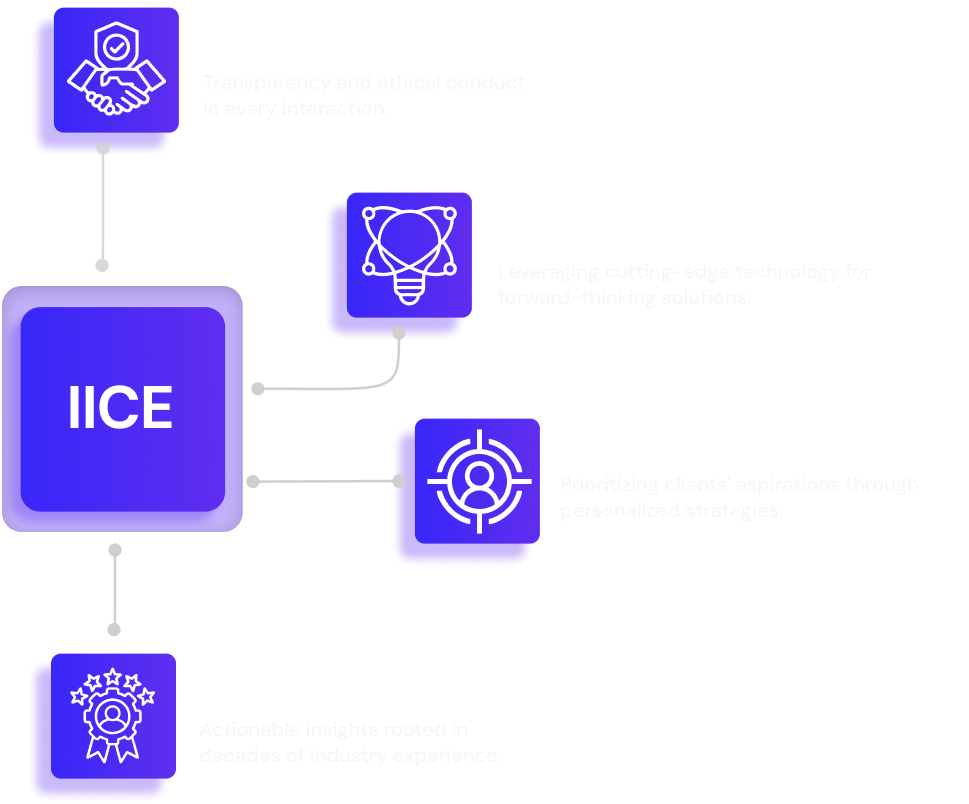 Our foundation is built on Integrity, Innovation, Client-Centricity, and Expertise (IICE) — values that shape every interaction, every idea, and every outcome.