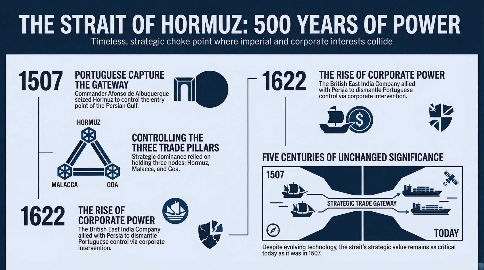 Five centuries later, the ships are different. But the strategic importance of the strait remains exactly the same.